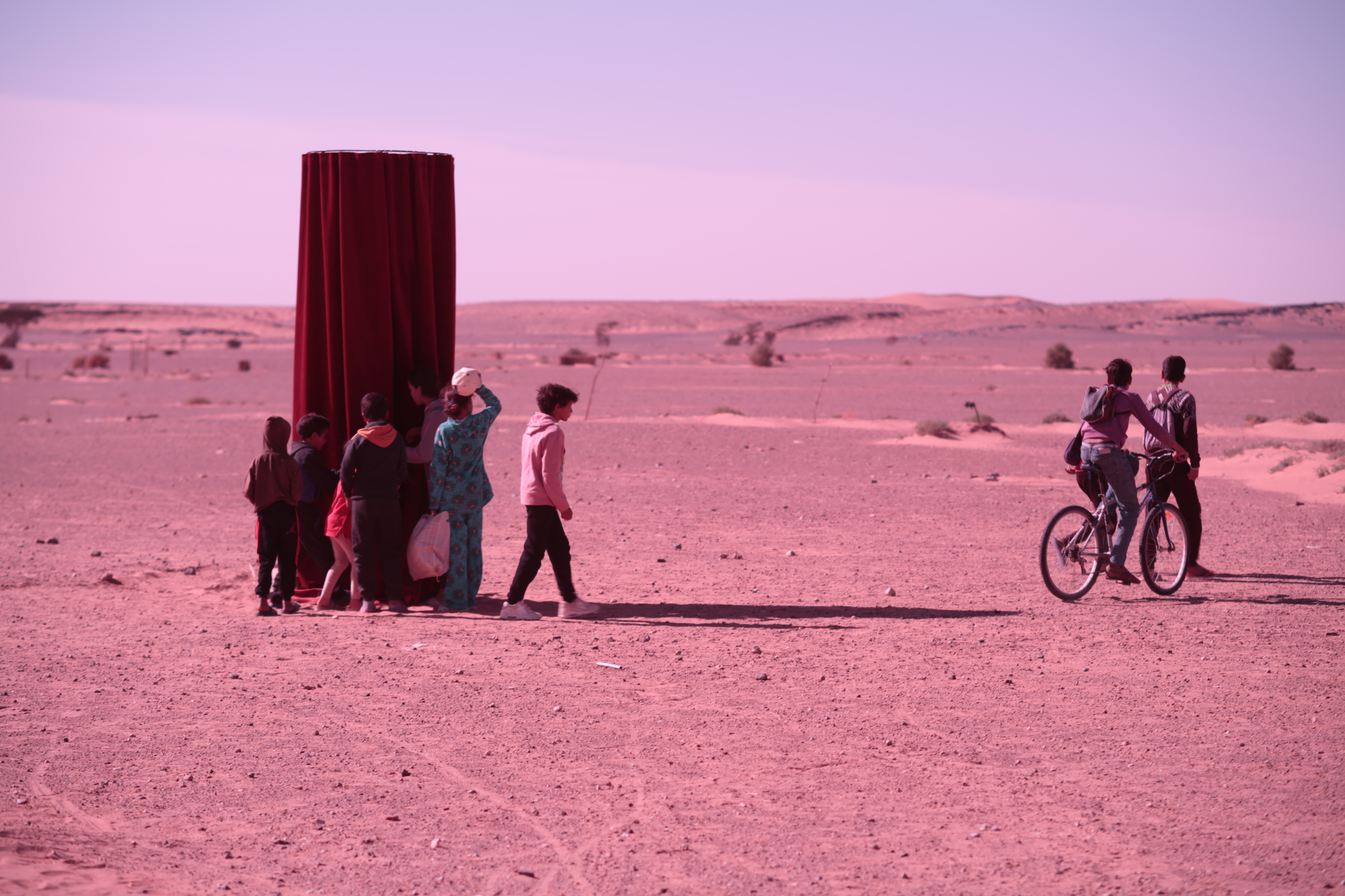 Sara Rodowicz-Ślusarczyk’s sound installation ‘Rain Applause’ is the stage for a certain performance. Its scenario has been written for two protagonists; one being the rain and the other a person encountering its imagery. On December 6, 2023, the work premiered in the Tissardmine oasis in the Moroccan Sahara.